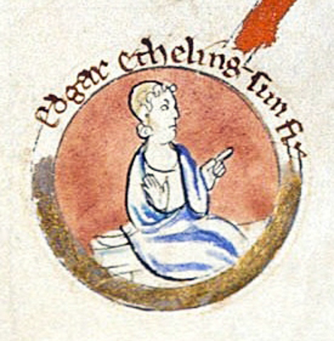 Edgar the Ætheling was the son of Edward, nephew of Edward the Confessor, who had fled – or been driven – into exile by Cnut. ‘Ætheling’ was an honorory title bestowed on him by the Confessor when Edgar returned to England in 1057; it means something between ‘of royal blood’ and ‘heir to the throne’. The date of his birth is unknown but he was still an infant.